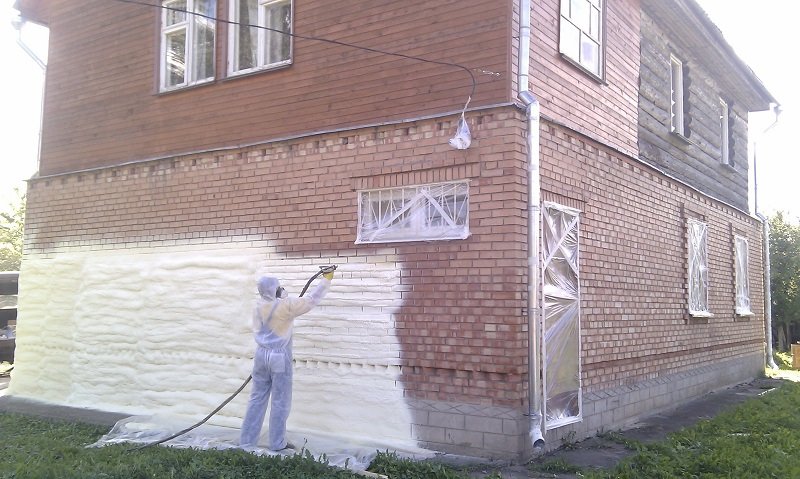 В этом отношении пенополиуретан является более оптимальным выбором. Ведь технология его напыления в жидком состоянии позволяет максимально заполнить все дефекты кладки и самого кирпича. Таким образом, достигается максимальная герметичность. Но самое главное – пенополиуретан не боится влаги и воды, поэтому он гораздо меньше подвержен разрушающему воздействию окружающей среды. А при правильной технологии нанесения, последним слоем напыляется защита, которая и вовсе делает такую теплоизоляцию неуязвимой.