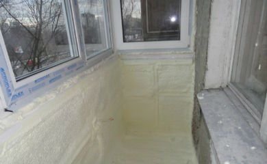 - Возможность напыления. Технология напыления ППУ позволяет быстро утеплить сложные поверхности и элементы балкона.