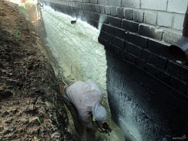 - Монтаж. Существует несколько методов монтажа утеплителя на фундамент: сухой способ с помощью крепежных элементов, мокрый способ с использованием клея, нанесение кистью или напыление.